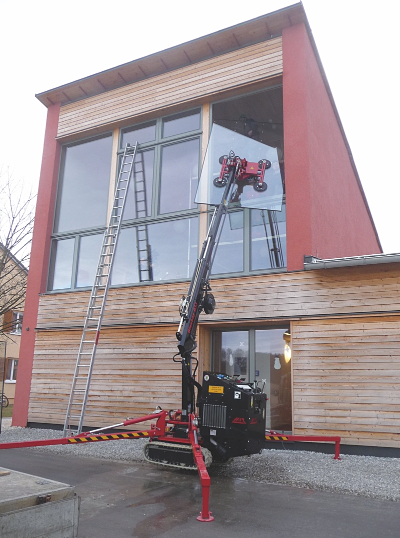 Glasboy: 3 hydraulische Schubstücke und manuelle Armverlängerung (max. 6,80 m Ausladung)